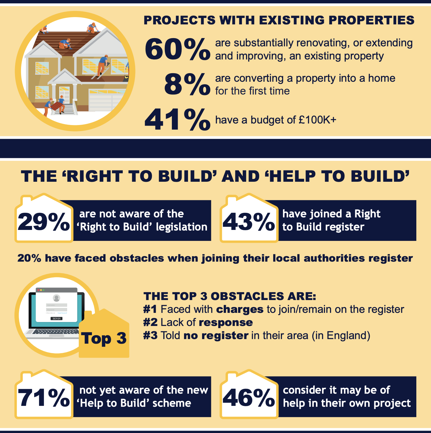A new survey by the National Self Build and Renovation Centre (NSBRC) reflects a series of data about people’s real, or planned, projects, including averages, such as age, household income and budget. This helps give a realistic picture of people building or renovating a home right now, showing what motivates them and what barriers they face. NaCSBA’s most recent surveys have asked questions of the general public, reflecting people’s aspirations rather than the realities of those actually involved in a build.